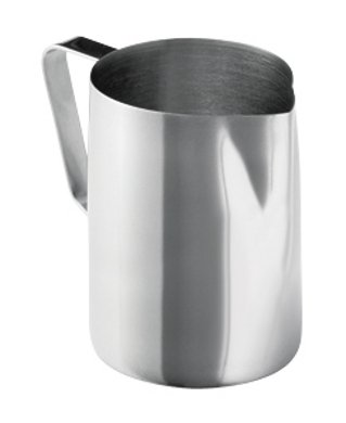 #Budget Milk and Water Jug 12oz 340mlFinished in mirror polished stainless steel. (Supplied Singly).This is a classic milk frothing jug as used by barista's all over the world. Use this jug to froth milk for Cappuccino and Latte.Shown in image bottom left.